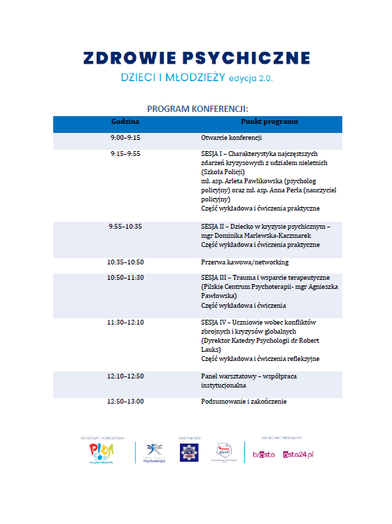 KONFERENCJA ZDROWIE PSYCHICZNE DZIECI I MŁODZIEŻY edycja 2.0
