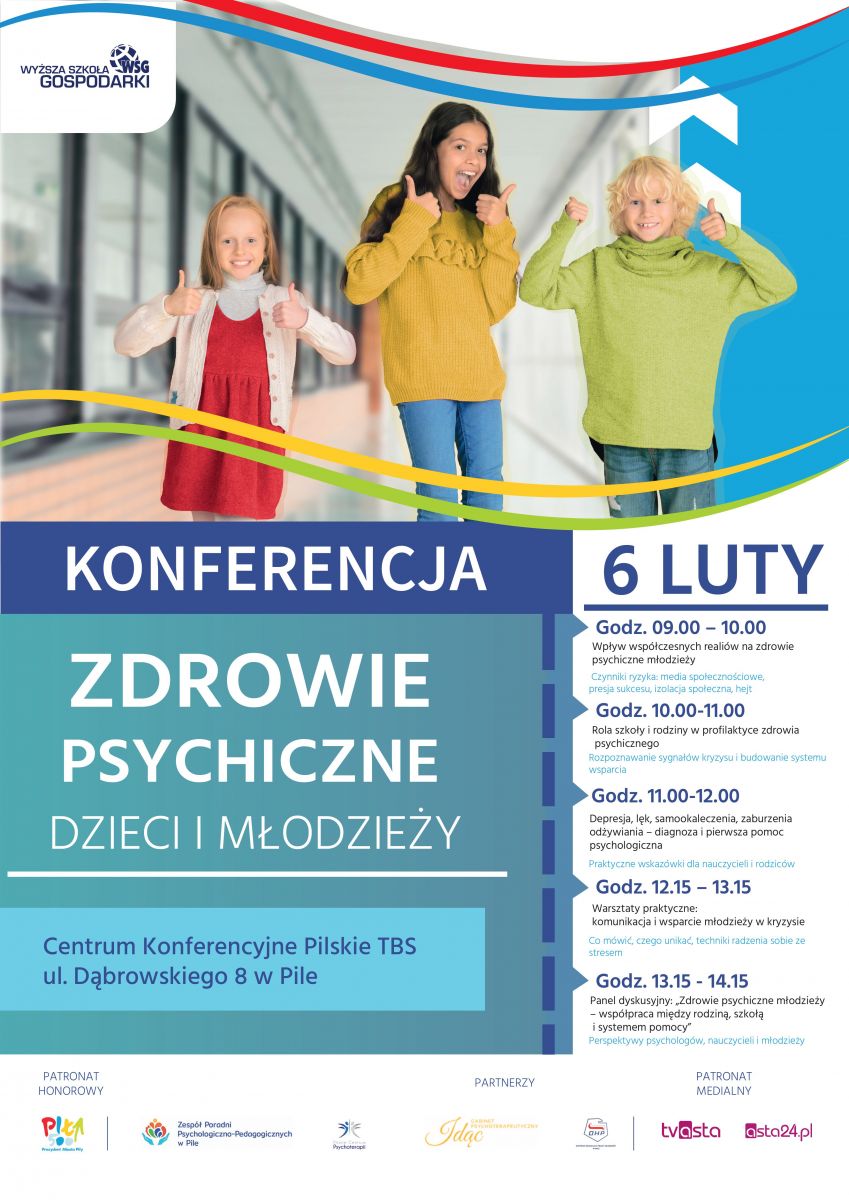 Serdecznie zapraszamy na konferencję poświęconą zdrowiu psychicznemu dzieci i młodzieży, która odbędzie się 6 lutego 2025 roku w Centrum Konferencyjne pilskie TBS ul. Dąbrowskiego 8 w Pile.